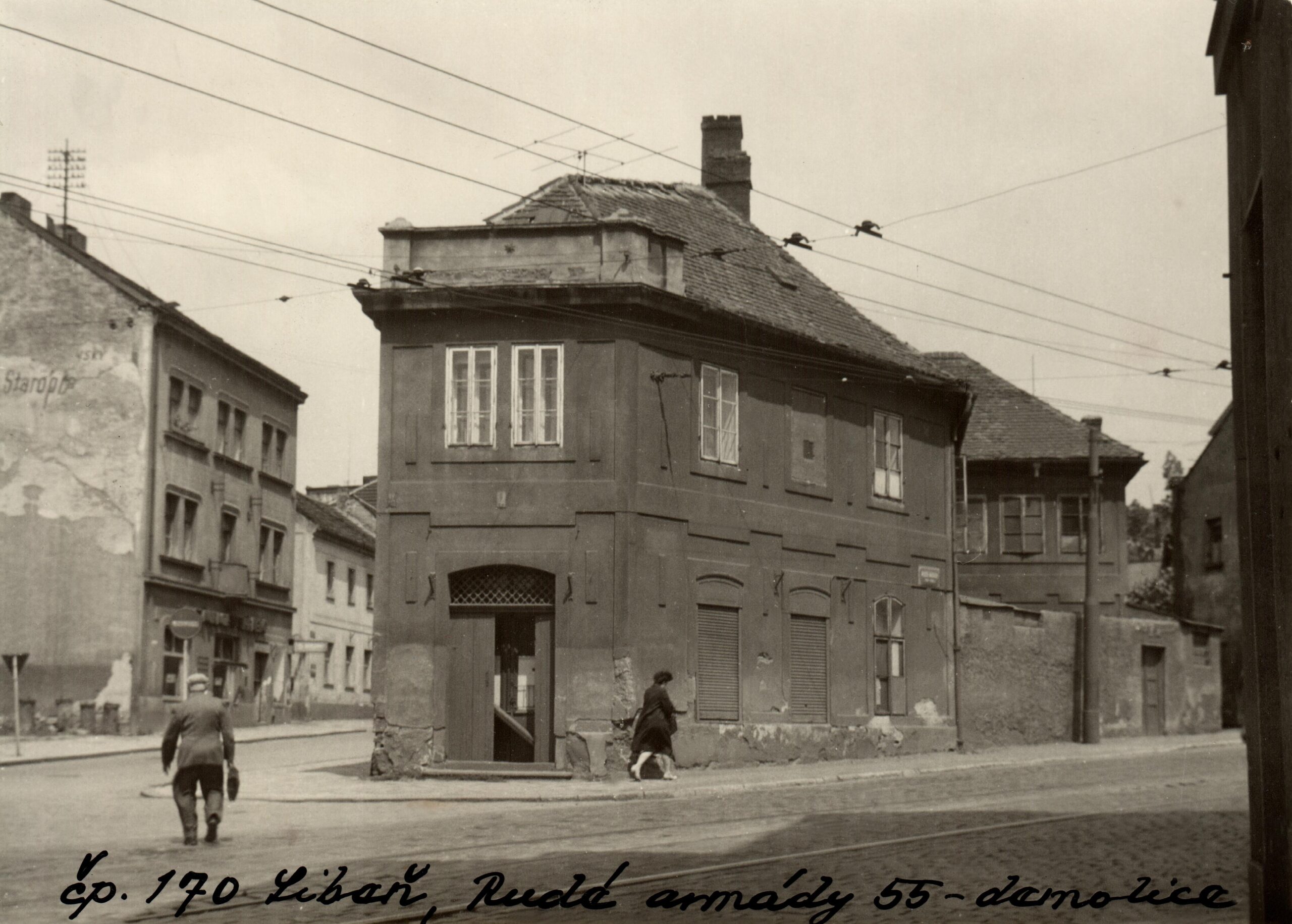 Mobel-n-bytek-Jos.-Tyrnera-Ÿp.-21-listopad-1942-v-popưed¡-sloup-oznaŸuj¡c¡-tram.-zast-vku-Ÿ.-14